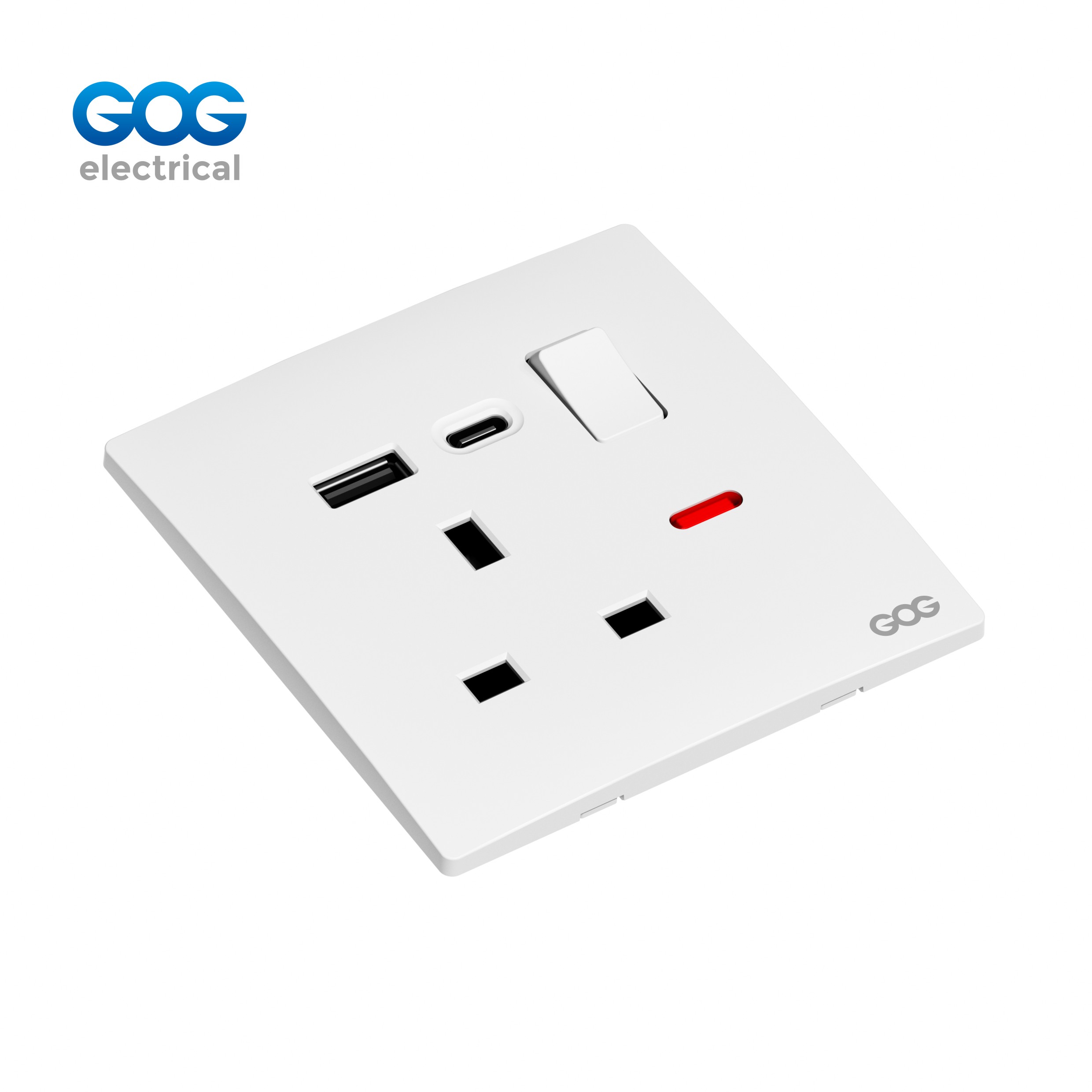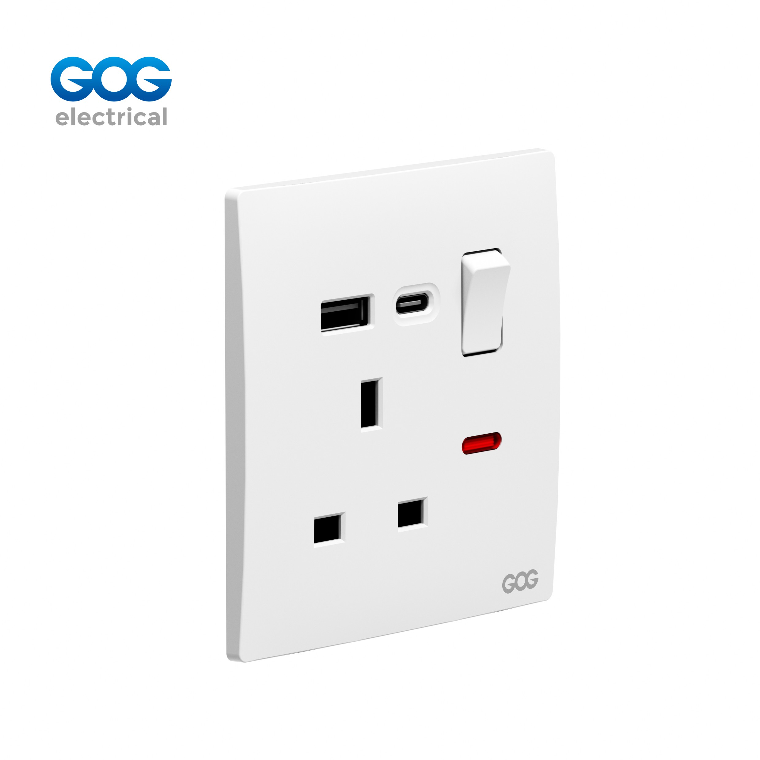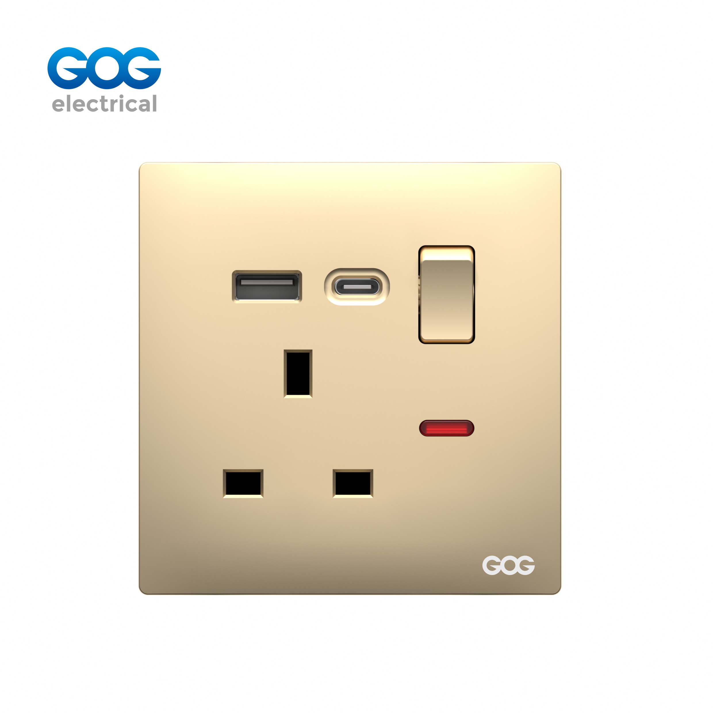 double MF 3 pin switched socket with neon usb typec |